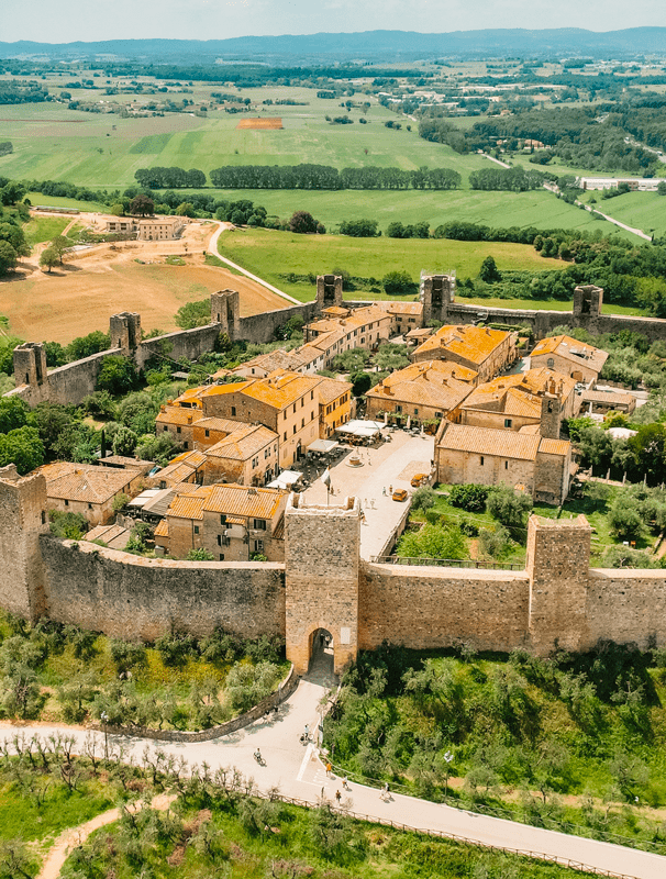 San Gimignano, Siena, Volterra, tutto il senese è costituito da una miriade di cittadine medioevali appoggiate sui colli brulli tra i filari di cipressi e i casali.